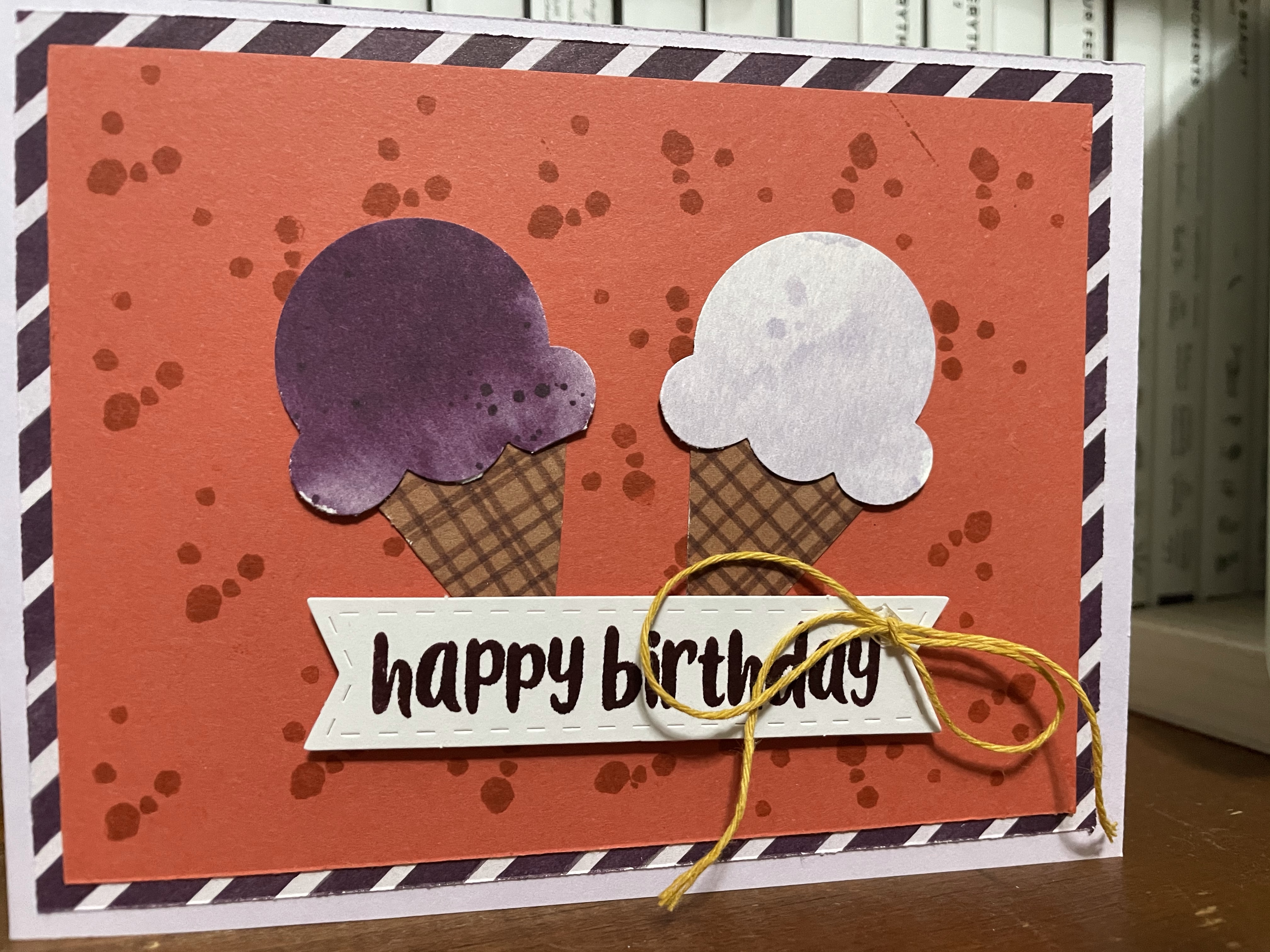 What is the best thing about summer? Ice cream, of course! It doesn’t matter that I am lactose intolerant and that I eat ice cream all year. I always associate ice cream and summer. When Stampin’ Up released the Ice Cream Suite in the January-June Mini Catalog, I held off. I wasn’t thinking of cards with ice cream cones or popsicles in January.