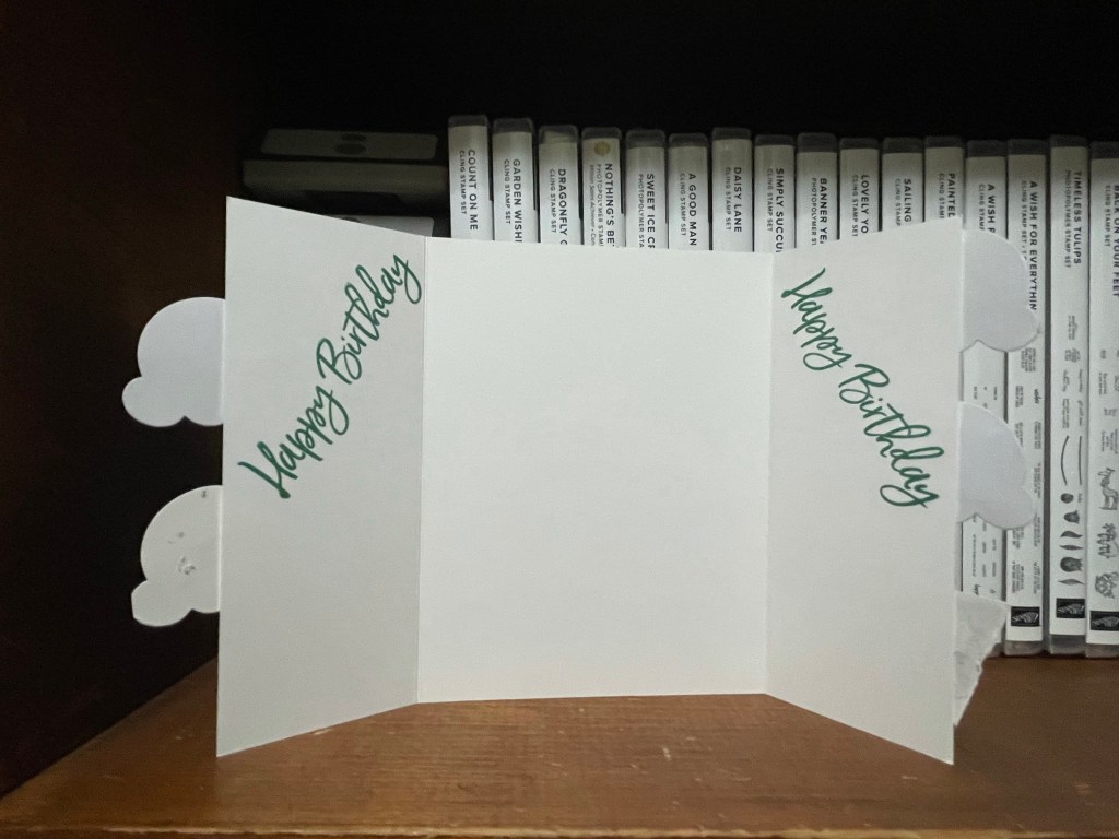 I also decided to put the sentiment on the inside, which I rarely do. I usually leave the inside blank to allow for room to write. However, the gate fold gave me two flaps where I could stamp a sentiment and leave the middle blank for writing.